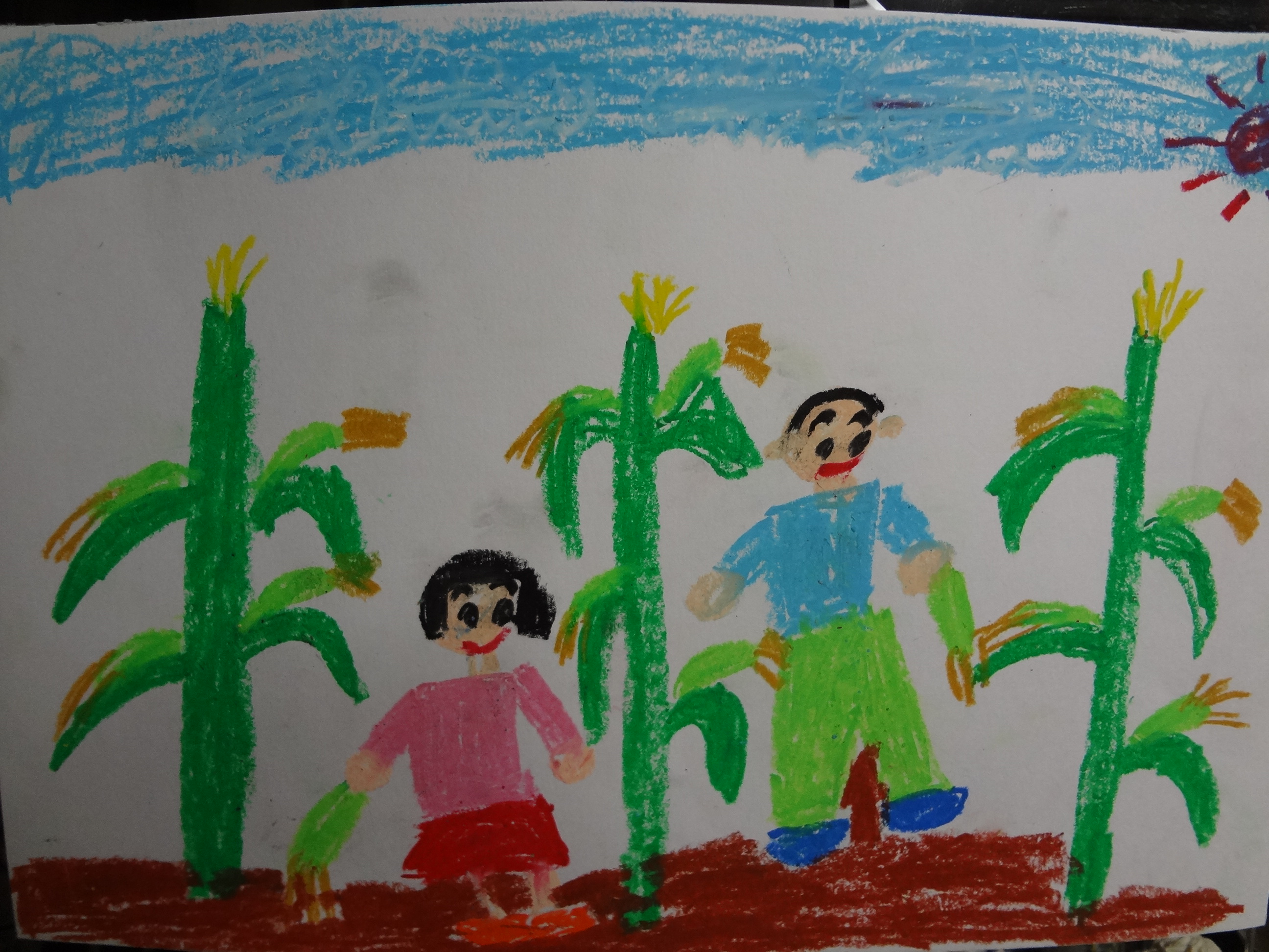 年中 夏休み、プールで遊びます。 とうもろこし狩りに行きました。 |
